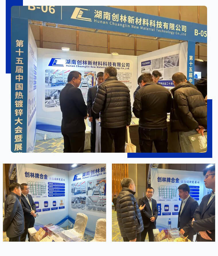 會上,湖南創(chuàng)林新材料展示了多款熱鍍鋅合金產(chǎn)品,這些產(chǎn)品在提高鍍鋅效果、降低鋅耗等方面表現(xiàn)出色,吸引了不少行業(yè)內(nèi)人士的關注??偨?jīng)理周業(yè)翔攜團隊熱情接待參觀嘉賓,并就產(chǎn)品技術、市場開拓、合作發(fā)展等事宜與嘉賓進行探討分享,交流互鑒。
